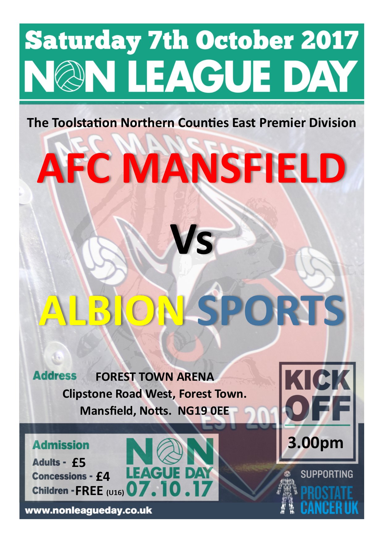 Come along and support the Bulls this Saturday as we entertain Albion Sports on Non League day 2017